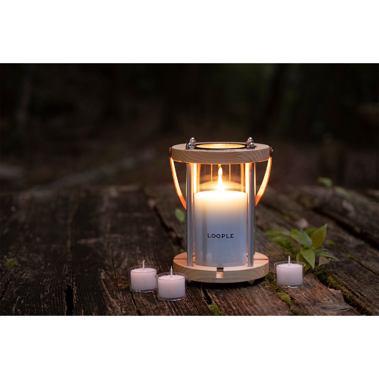 自然素材のウッドとガラスで作られたリフィル式ランタン。