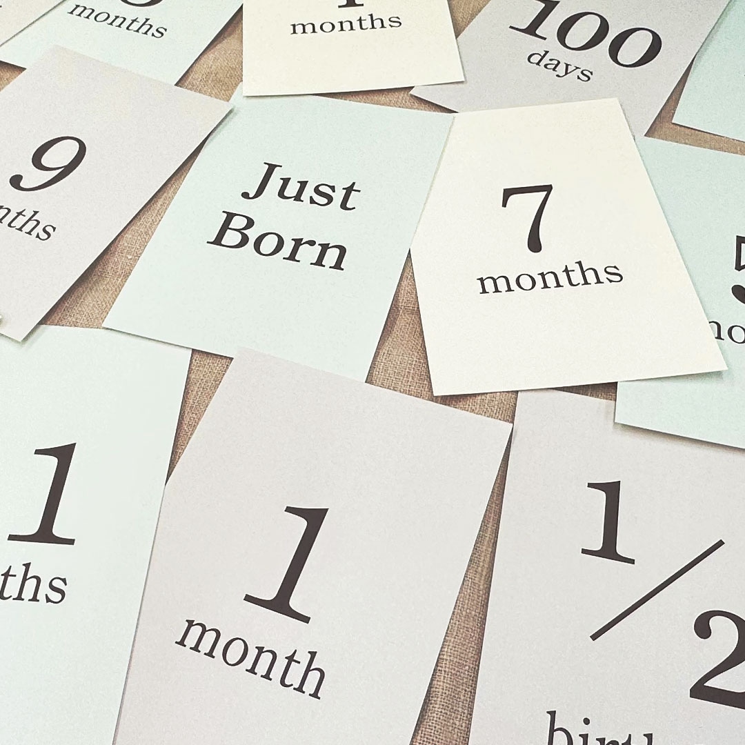 月齢フォトを撮影する際、月齢が書かれたカードを添えてあげることで、あとで見返したときに「何か月の頃の写真なのか」がわかりやすくなります。